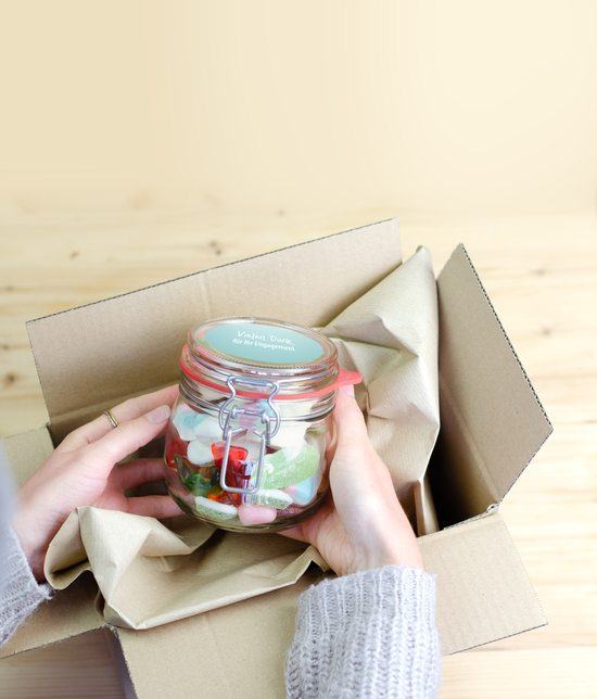 Die kunterbunte Gute-Laune-Mischung als Nervennahrung für‘s Home Office oder einfach so. Haltbarkeit: 8 Monate bei sachgerechter Lagerung Inhalt: 320 g Süßigkeiten Mischung Druckfläche: ø 75 mm auf dem Deckel Größe: 115 x 95 x 115 mm VPE: 2