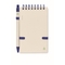 DIN A6 Notizbuch (70% recycelter Milchkarton und 30% recyceltes Papier) mit 70 Blatt (140 Seiten). Spiralbindung. Elastisches Verschlussband, Stiftschlaufe und passender Druckkugelschreiber. Blaue Tinte.