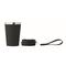 Doppelwandiger Becher aus recyceltem Edelstahl (90 % recycelter Edelstahl und 10 % Edelstahl). Oberfläche aus PP. RPET-Schlaufe für das Handgelenk. Füllmenge: 350 ml.