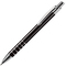 Schlanker Aluminium Kugelschreiber mit 5 chromfarbenden Ringen in der Griffzone und chromfarbenden Teilen. Schwarzschreibende Kunststoffmine.