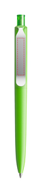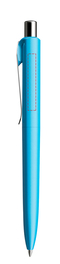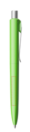 Die Ikone eines klassischen Schreibgerätes. Wertige Clip-Druckknopf-Kombinationen aus Metall machen den DS8 Metall-Clip noch vielseitiger. Ein ausgewogener Material-Mix aus Metall und Kunststoff, der Marken gekonnt in Szene setzt. Metall-Clips in verschiedenen Finishs verleihen ihm einen luxuriösen Touch. Die farblich absetzbaren Clip-Holder bieten eine Möglichkeit, neben der Primärfarbe auch die Zweitfarbe der Corporate Identity harmonisch umzusetzen. In der Ausführung mit vollfarben mattem Gehäuse (PSM) lieferbar in sechs Standardfarben, hergestellt mit einem Rezyklatanteil von 100% (Schwarz und Weiß) oder 50% (alle anderen Farben), gekennzeichnet mit dem internationalen Recycling-Symbol. Sondergehäusefarben ab 5.000 Stück. Fünf Druckflächen für Werbeanbringungen stehen zur Verfügung. Die Standardausführung ist mit Silber satiniertem Clip ausgestattet. Als Option stehen Clips in galvanisiertem Schwarz oder Graphit zur Auswahl. Der Druckknopf ist aus Kunststoff. Ausgestattet mit der umweltfreundlichen auswechselbaren FLOATING BALL® lead free-Großraummine 1.0, Schreiblänge 5.000 m, Schreibfarbe Blau oder Schwarz.
