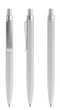 Haptik ist die neue Optik. Das Muster im und nicht auf dem Schreibgerät eröffnet eine neue Dimension in Ästhetik und Kommunikation. Beim QS01 als faszinierend facettenreiche Dreiecksstruktur, die sich dem Auge immer wieder neu und anders darstellt und von den Fingerspitzen als angenehme Grifffläche erlebt wird. Jetzt auch mit Metall-Clip. Den QS01 mit seiner facettenreichen Oberflächenstruktur gibt es in zehn matten Farben, drei mit poliertem Clipholder/Druckknopf sowie sieben mit transparentem Clipholder/Druckknopf, hergestellt mit einem Rezyklatanteil von 100% (Schwarz und Weiß) oder 50% (alle anderen Farben), gekennzeichnet mit dem internationalen Recycling-Symbol. Sondergehäusefarben ab 5.000 Stück. Die Standardausführung ist mit Silber satiniertem Clip ausgestattet. Als Option stehen Clips in galvanisiertem Gold, Schwarz oder Graphit zur Auswahl. Ausgestattet mit der umweltfreundlichen auswechselbaren FLOATING BALL® lead free-Großraummine 1.0, Schreiblänge 5.000 m, Schreibfarbe Blau oder Schwarz.