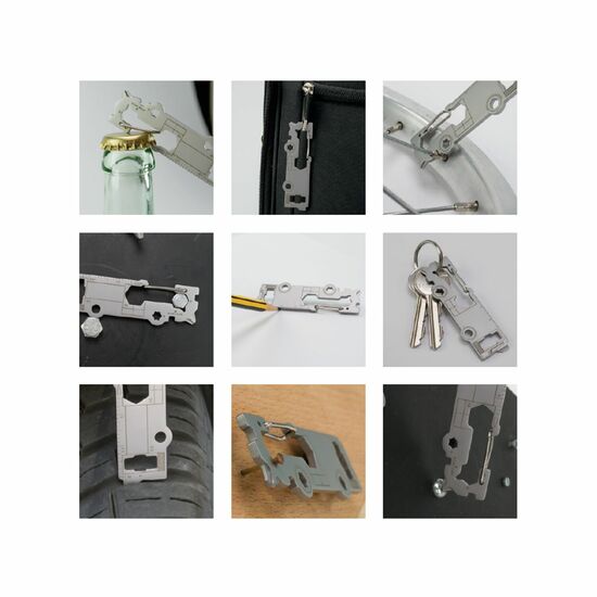 Multitool (aus robustem Edelstahl) für den Schlüsselbund inkl. Funktionsbeschreibung und Standard-Kartonverpackung, kundenindividuelle Verpackung und Funktionsbeschreibung ab 100 Stück möglich. In verschiedenen Standarddesigns verfügbar. Key Tool als Schlüsselanhänger mit 18 Funktionen: 1 Karabiner, 6 Sechskantschlüssel, 2 Speichenvierkant, 1 Schlitzschraubendreher, 1 Nagelzieher, 1 Kreuzschlitzschraubendreher, 1 Flaschenöffner, 1 Zentimeter Lineal, 1 Inch Lineal, 2 Reifenprofilmesser (1,6 / 4 mm), 1 Nagelfeile, - ab 3.000 Stück auch als Sonderproduktion mit individueller Key Tool Form möglich. Sprechen Sie uns an!