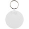 Weißer kreisförmiger Schlüsselanhänger mit metallenem Schlüsselring. Der Metallring bietet ein flaches Profil, das sich ideal für Mailings eignet.